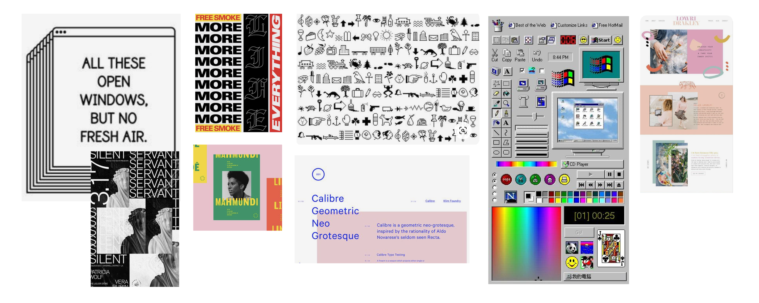 We created a moodboard of how we envisioned the website; elements like repetition, yuxtaposition of elements, wingdings and even Susan Kare’s icons for Apple were major sources of inspiration.